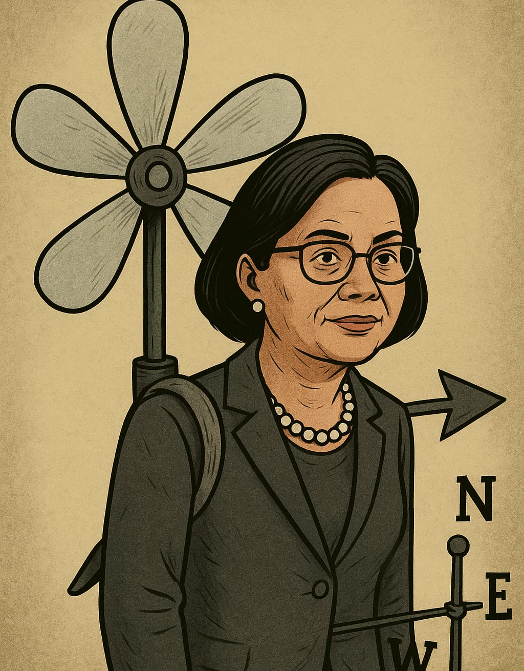 Siapa sebenarnya Sri Mulyani? Teknokrat yang teguh, “a man for all seasons”, mampu bertahan di segala cuaca politik. Atau pemindai angin _(Weather vane)_ yang pintar mengantisipasi arah angin politik? Seperti baling-baling cuaca di atap istana: yang selalu tahu arah kebijakan presiden yang berbeda.