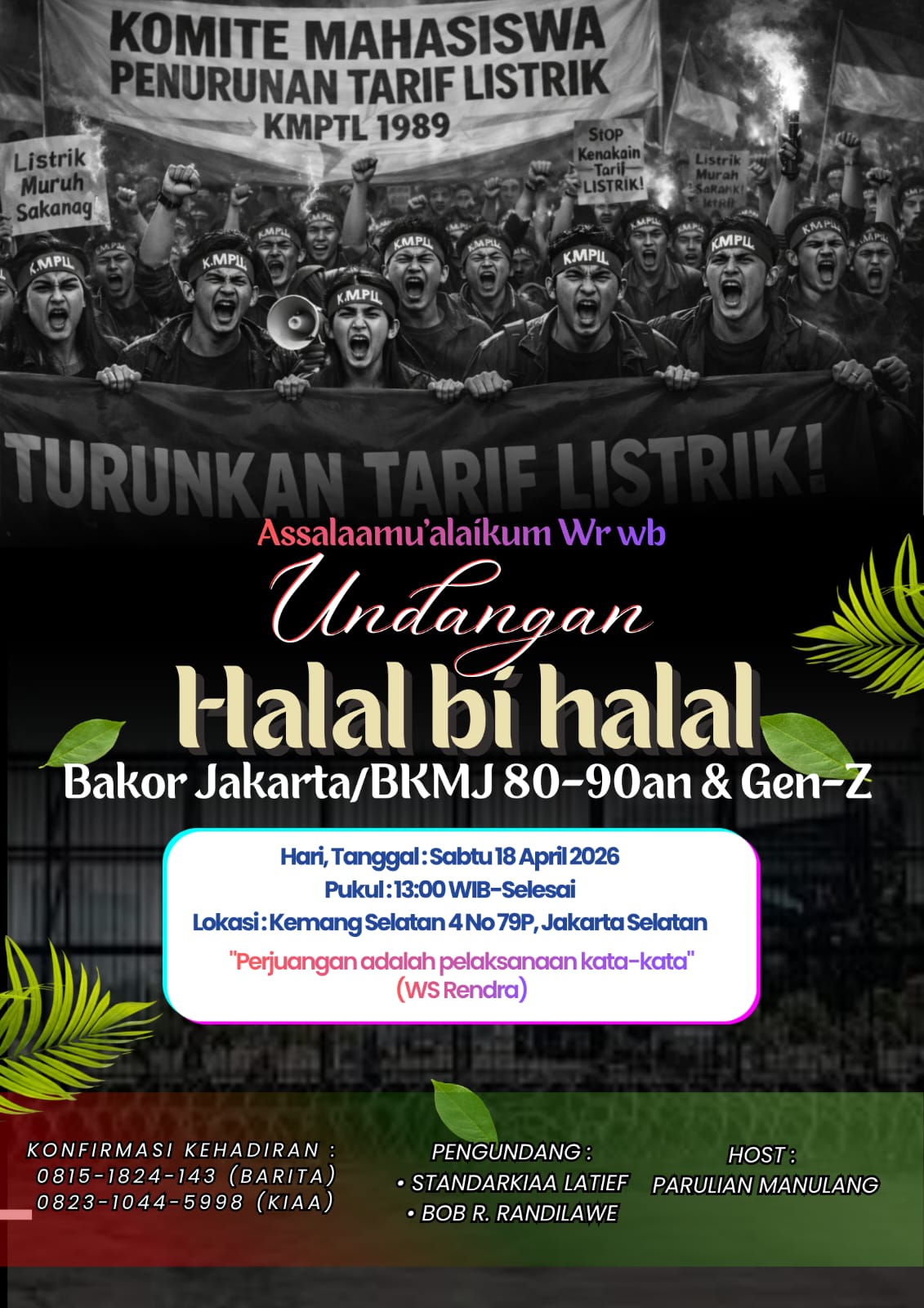 Dalam undangan yang beredar, panitia menyematkan kutipan inspiratif dari W.S. Rendra, “Perjuangan adalah pelaksanaan kata-kata”, yang menggambarkan semangat konsistensi antara gagasan dan tindakan dalam kehidupan sosial maupun politik.